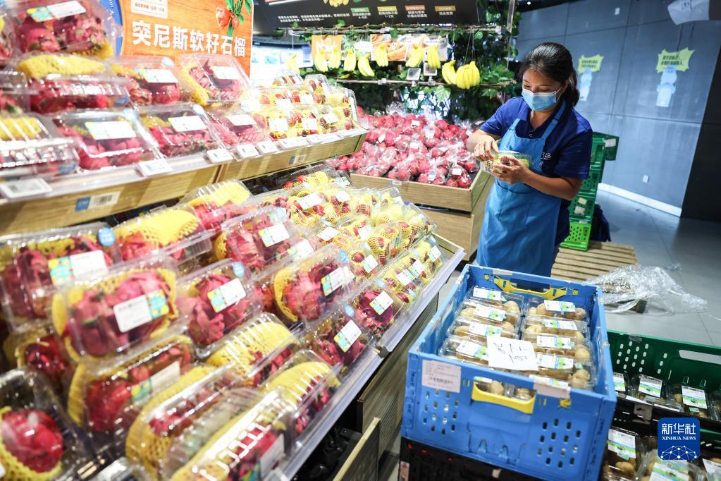 9月7日,貴陽(yáng)一生鮮超市工作人員在分揀水果。