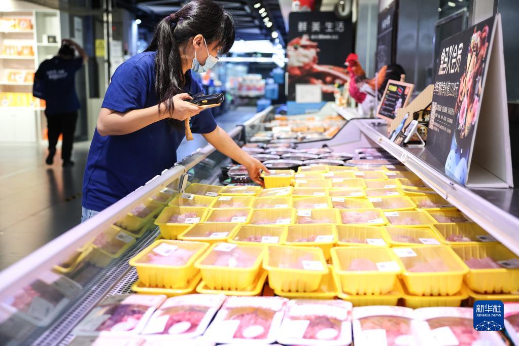 9月7日,貴陽(yáng)一生鮮超市工作人員在分揀肉類(lèi)。新華社記者 歐東衢 攝