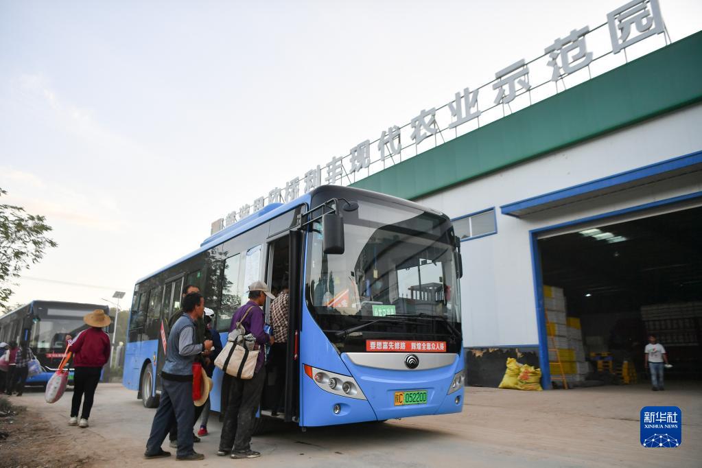 9月5日,來(lái)自安置社區的務(wù)工人員結束一天的工作后,從位于麟游縣九成宮鎮西坊村的農業(yè)示范園乘坐通勤班車(chē)返回住地。