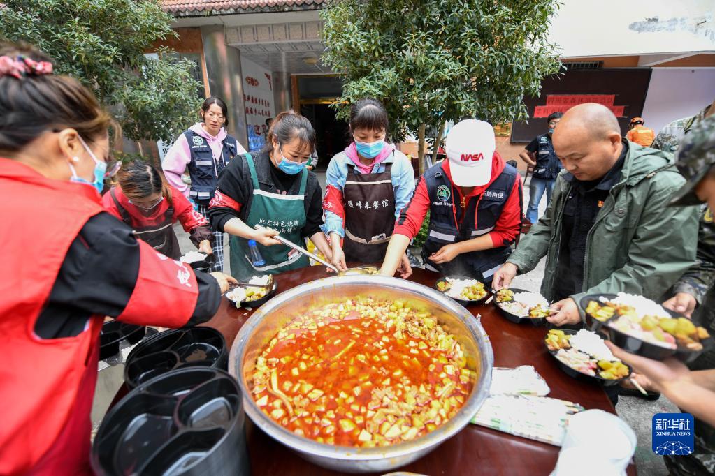 9月7日,在石棉縣草科鄉政府安置點(diǎn)內,當地群眾為在場(chǎng)救援人員準備飯菜。