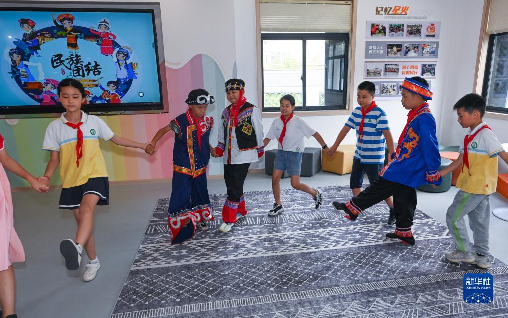 9月7日,多個(gè)民族的孩子們在東林鎮星火村參加迎中秋集體舞。
