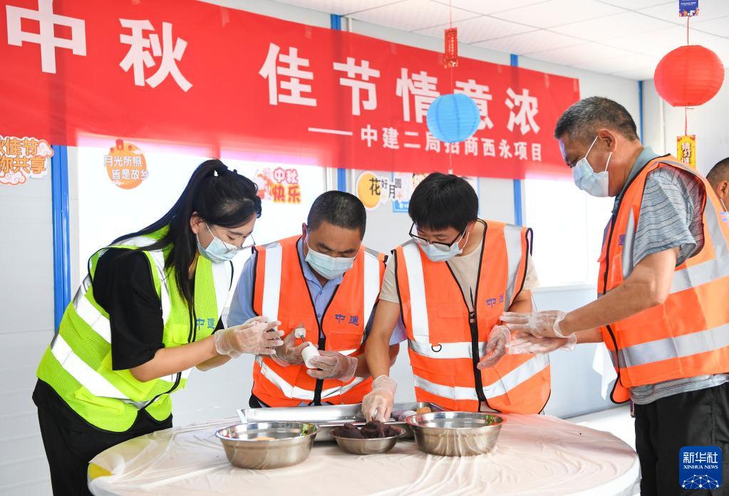 9月7日,工友在中建二局招商西永項目部參與做月餅活動(dòng)。