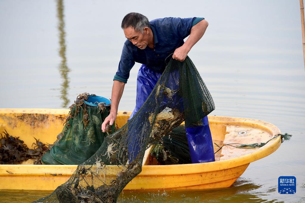 中秋節臨近,安徽省蚌埠市五河縣沱湖鄉的蟹農們忙著(zhù)進(jìn)行大閘蟹的捕撈、分揀和外銷(xiāo)工作,供應節日市場(chǎng)。近年來(lái),當地依托優(yōu)質(zhì)水域,大力發(fā)展大閘蟹養殖業(yè),為當地農戶(hù)開(kāi)辟了一條特色養殖的致富路。