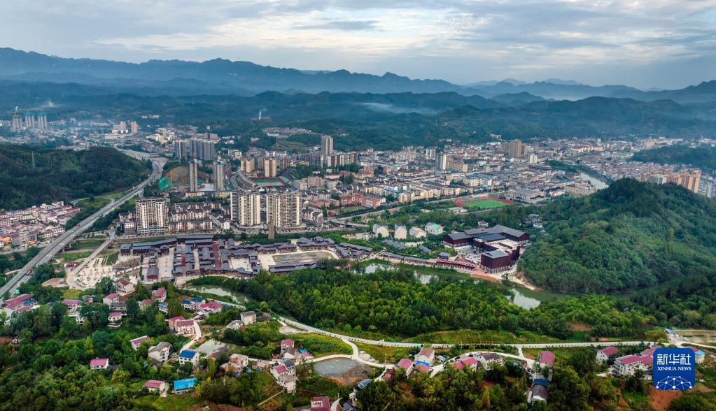 晨曦中綠色環(huán)抱的寧強縣城,漢水穿城而過(guò)(無(wú)人機照片,9月6日攝)。寧強縣緊扣綠色循環(huán)、生態(tài)宜居發(fā)展定位,大力推進(jìn)城市建設,城市面貌日新月異。
