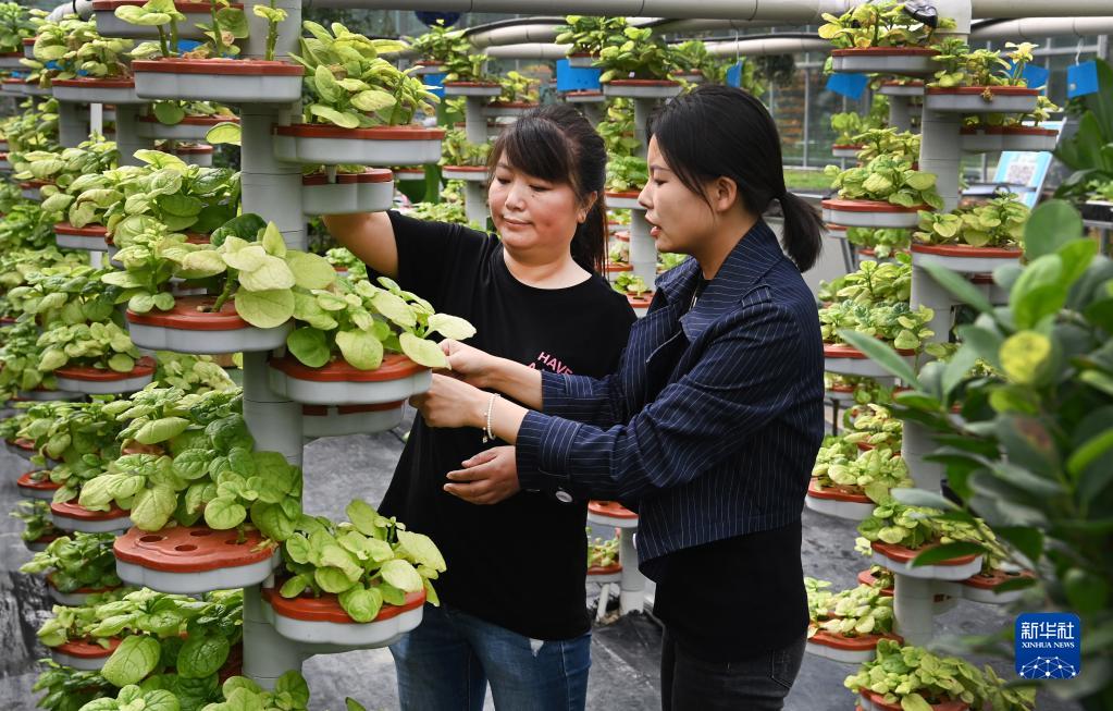9月7日,陜西漢江之源農業(yè)開(kāi)發(fā)有限公司員工在打理無(wú)土栽培綠葉菜。