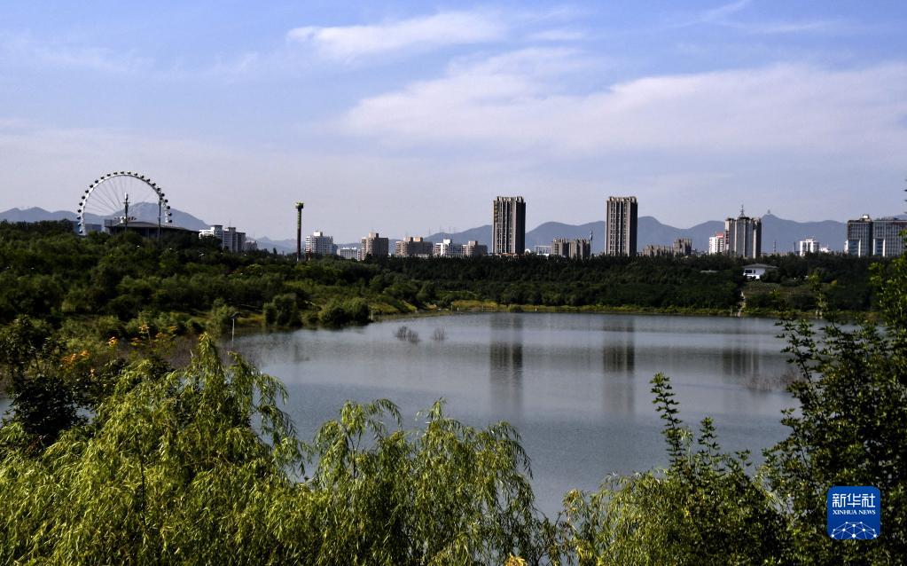 這是利用阜石路廢棄的大型砂石坑建設的西郊雨洪調蓄工程,蓄水量可達680萬(wàn)立方米(9月8日攝)。