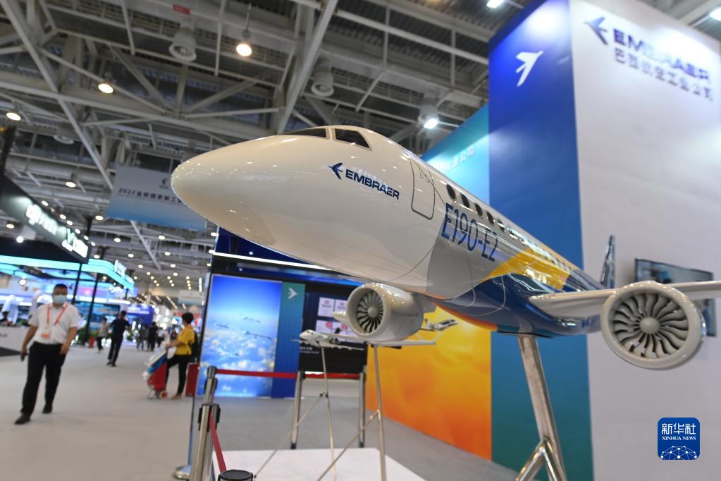 9月8日拍攝的在第二十二屆投洽會(huì )巴西航空工業(yè)公司展位展出的E190-E2飛機模型。