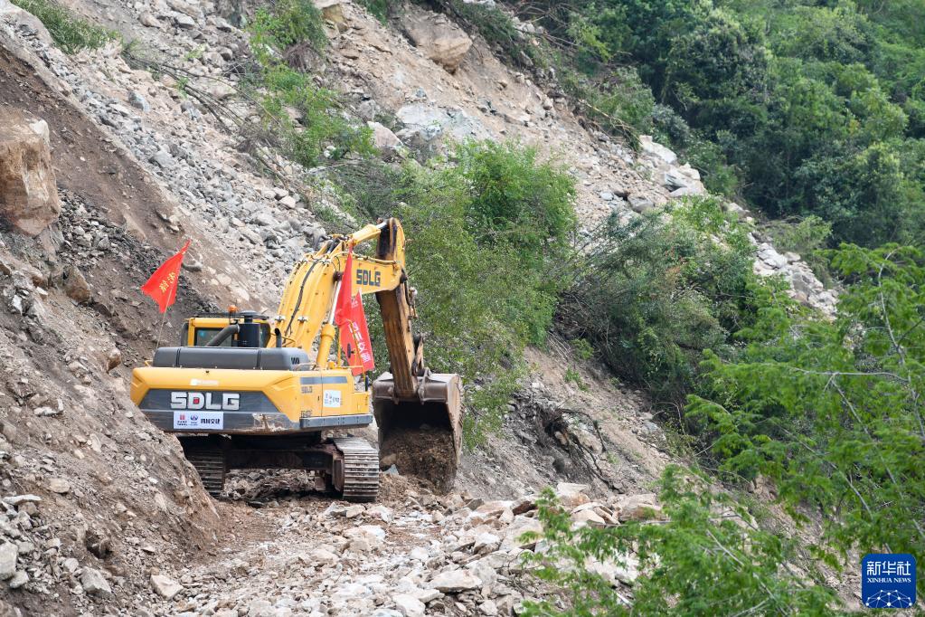 9月8日,四川路橋的工作人員搶修石棉縣與瀘定縣得妥鎮之間的道路。