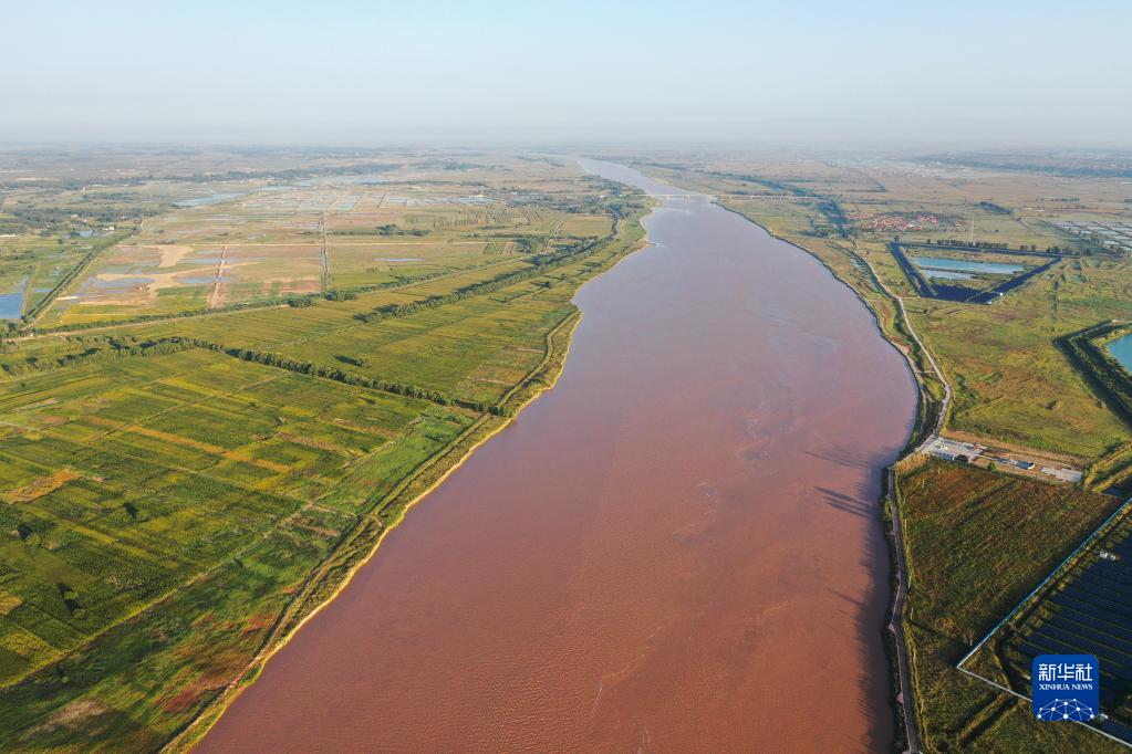 這是9月8日拍攝的黃河托克托縣段景色(無(wú)人機照片)。