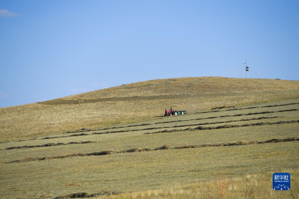 秋日時(shí)節,在內蒙古錫林郭勒盟阿巴嘎旗牧區的草原上,牧民開(kāi)始打草,儲備越冬草料。
