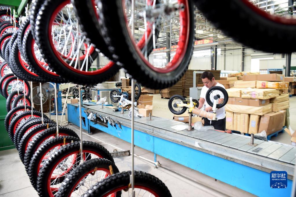9月8日,在五河縣自行車(chē)產(chǎn)業(yè)園一家自行車(chē)生產(chǎn)企業(yè)內,工人在生產(chǎn)線(xiàn)上忙碌。