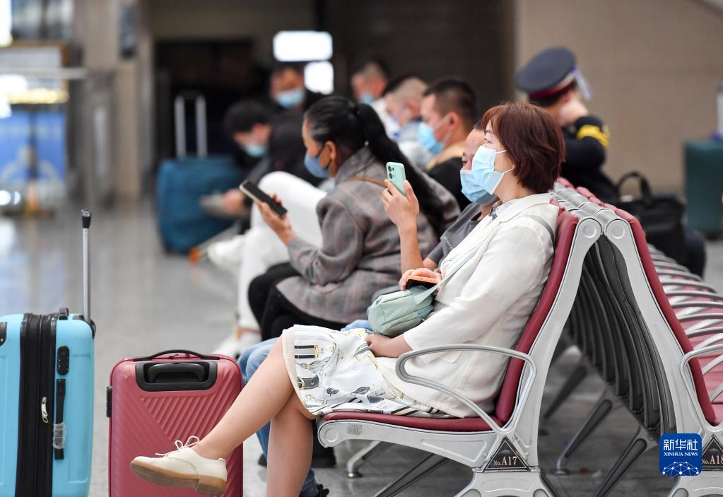 9月9日,在哈爾濱西站,旅客在大廳候車(chē)等待。