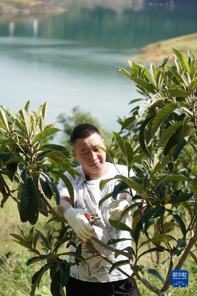 9月6日,在漢江瀛湖邊的枇杷果園內,安康市漢濱區瀛湖鎮橋興村村民唐濤邦在修剪果樹(shù)。為避免影響水質(zhì),安康市漢濱區拆除漢江瀛湖上的養魚(yú)網(wǎng)箱3萬(wàn)多口。像唐濤邦一樣,許多昔日的漁民轉型成為果農、茶農。