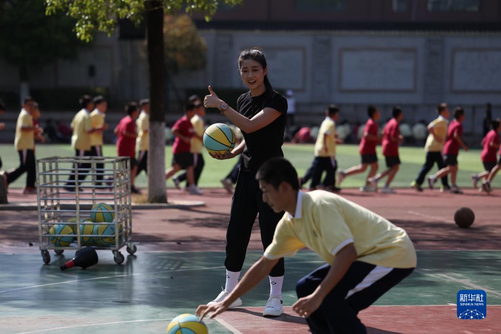 9月6日,于紅俊在長(cháng)沙市明德華興中學(xué)給學(xué)生上體育課。