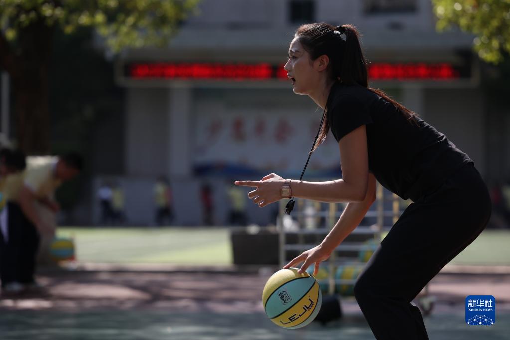 9月6日,于紅俊在長(cháng)沙市明德華興中學(xué)給學(xué)生上體育課。