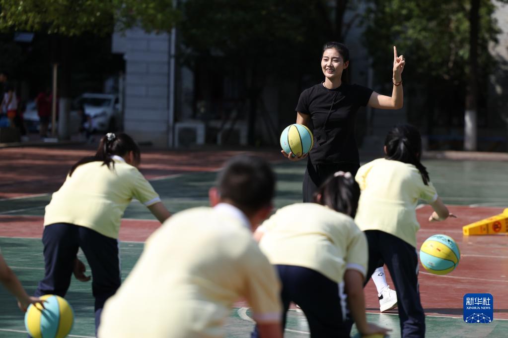 9月6日,于紅?。ê螅┰陂L(cháng)沙市明德華興中學(xué)給學(xué)生上體育課。