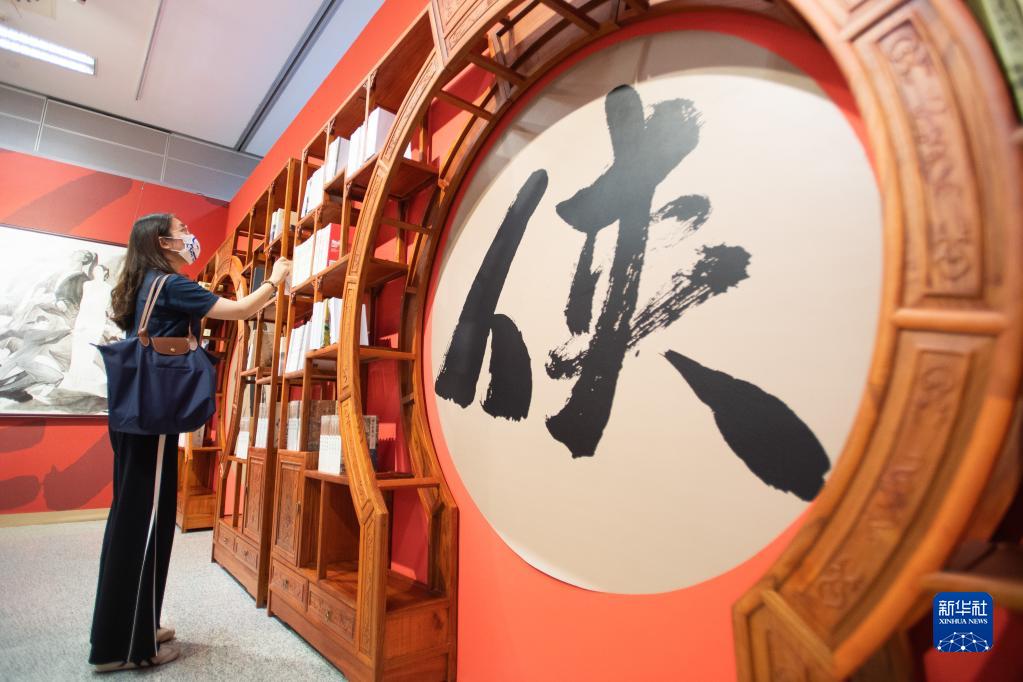 9月9日,參觀(guān)者觀(guān)看展出的金庸小說(shuō)作品。