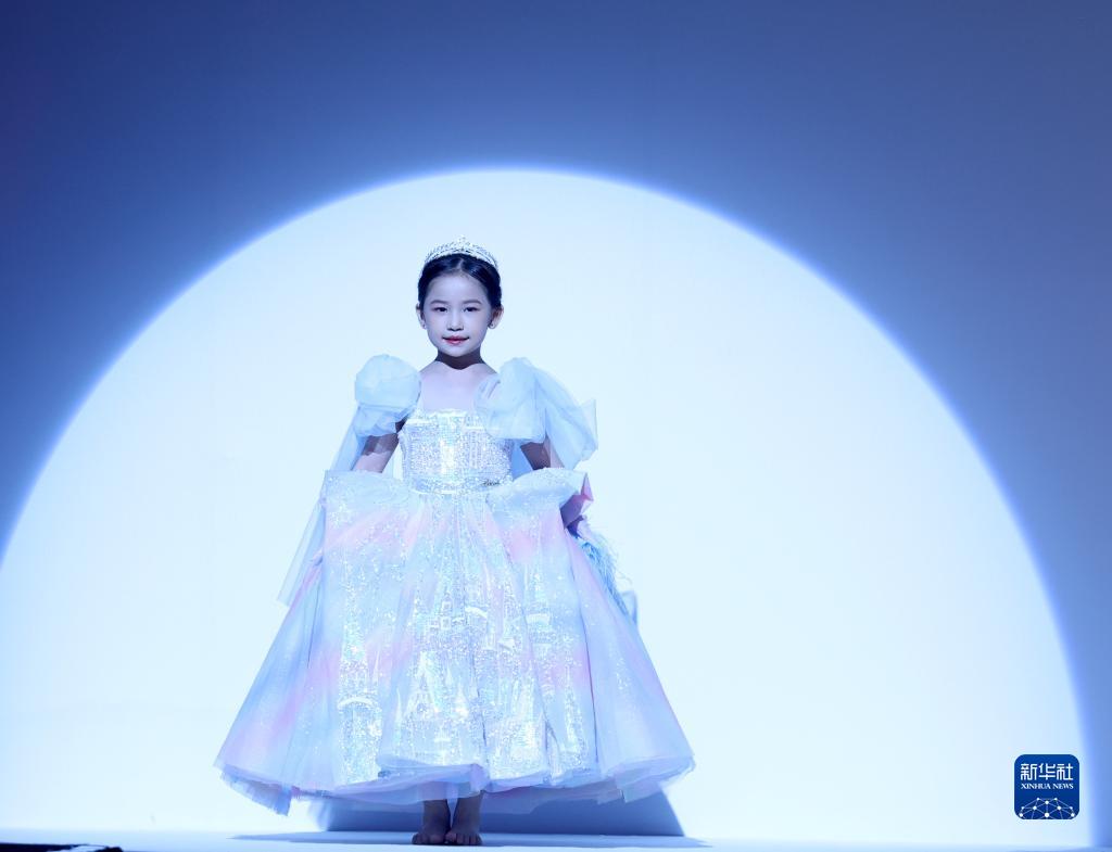 9月9日,小模特在北京中國國際時(shí)裝周(2023春夏系列)舉行的“AMORCODE”童裝發(fā)布會(huì )上展示童裝。