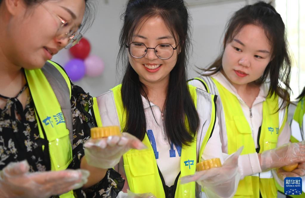 9月9日,在中建二局陜西分公司咸陽(yáng)高鐵新城項目部,建設者在制作月餅。