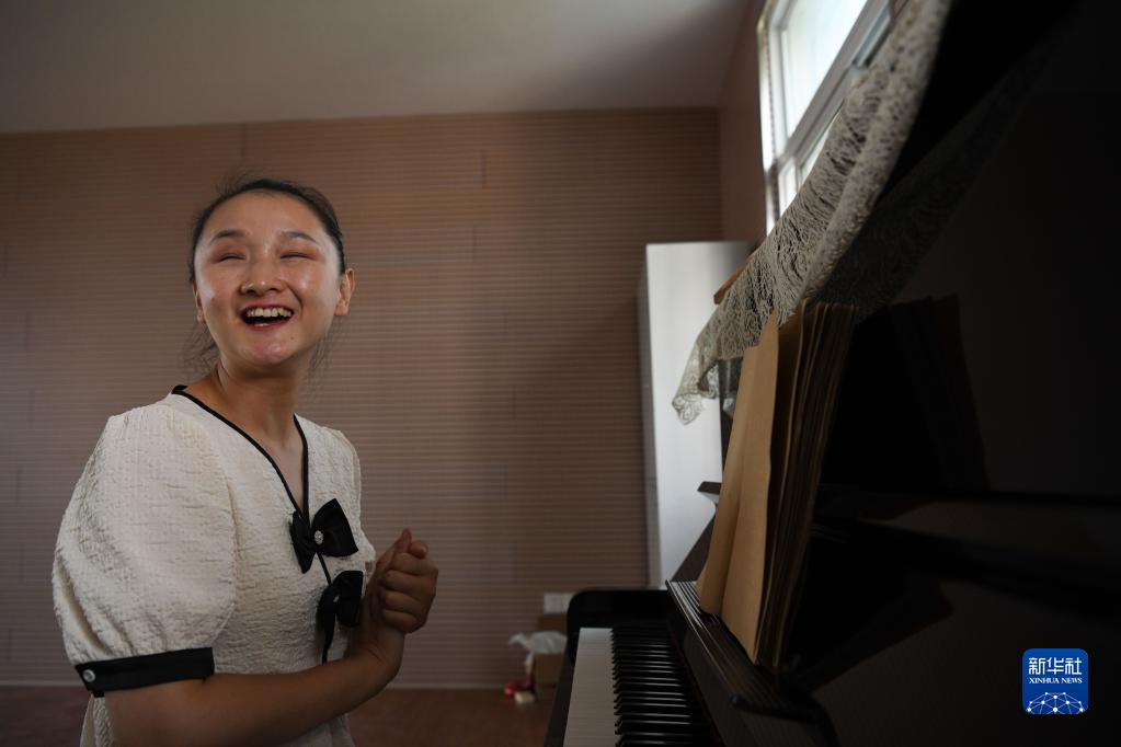 9月7日,在安慶市特殊教育學(xué)校音樂(lè )教室里,張晨給盲生們上音樂(lè )課。