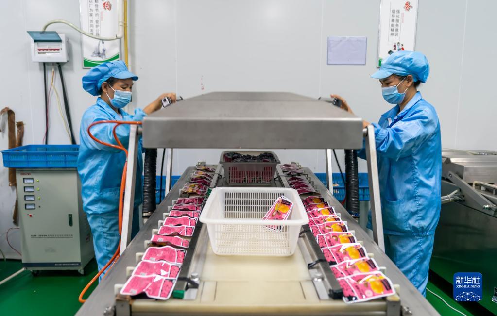 9月9日,在祿豐市中村鄉一家板栗加工企業(yè),工作人員將裝袋的板栗封口。