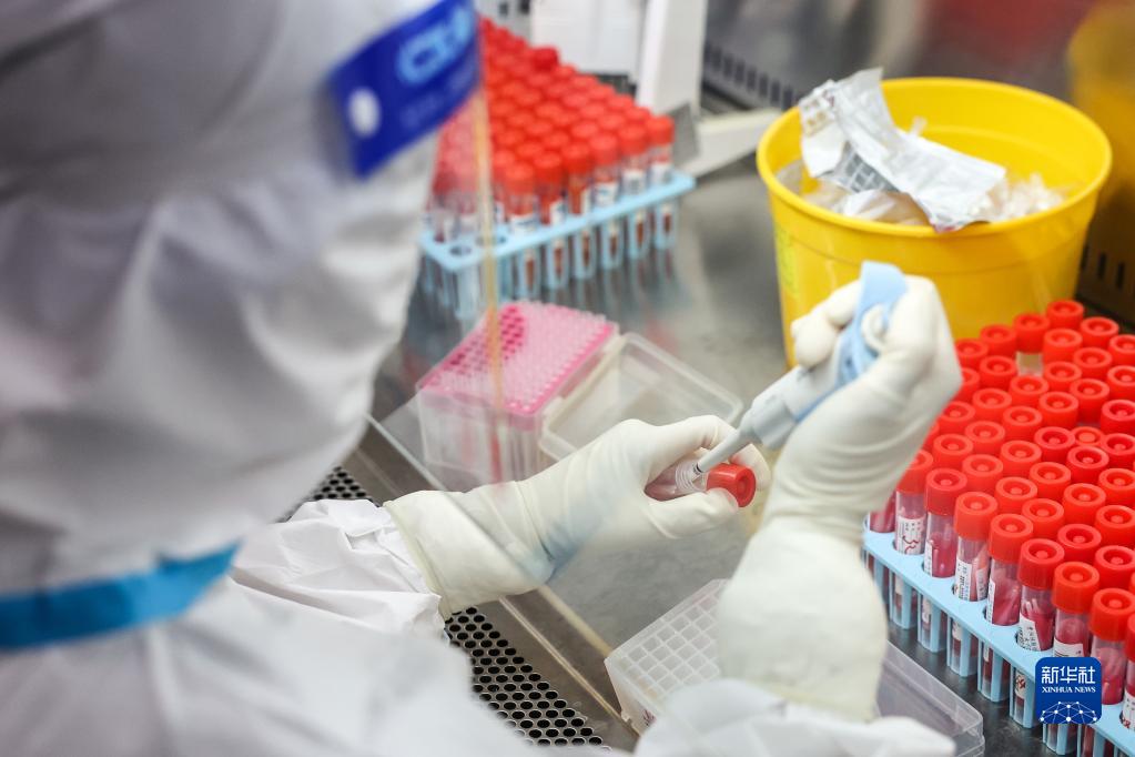 貴陽(yáng)市筑城廣場(chǎng)移動(dòng)方艙核酸檢測基地是承擔貴陽(yáng)市大規模核酸檢測任務(wù)的“主陣地”之一。為盡快完成核酸檢測工作,實(shí)驗室檢測團隊采取24小時(shí)輪班倒制度,晝夜兼程。新華社記者 歐東衢 攝