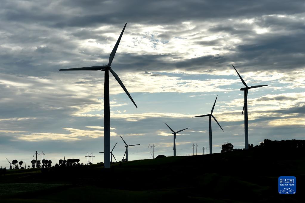 這是山西省右玉縣小五臺風(fēng)力發(fā)電場(chǎng)的風(fēng)力發(fā)電機組(2017年7月24日攝)。新華社記者 詹彥 攝