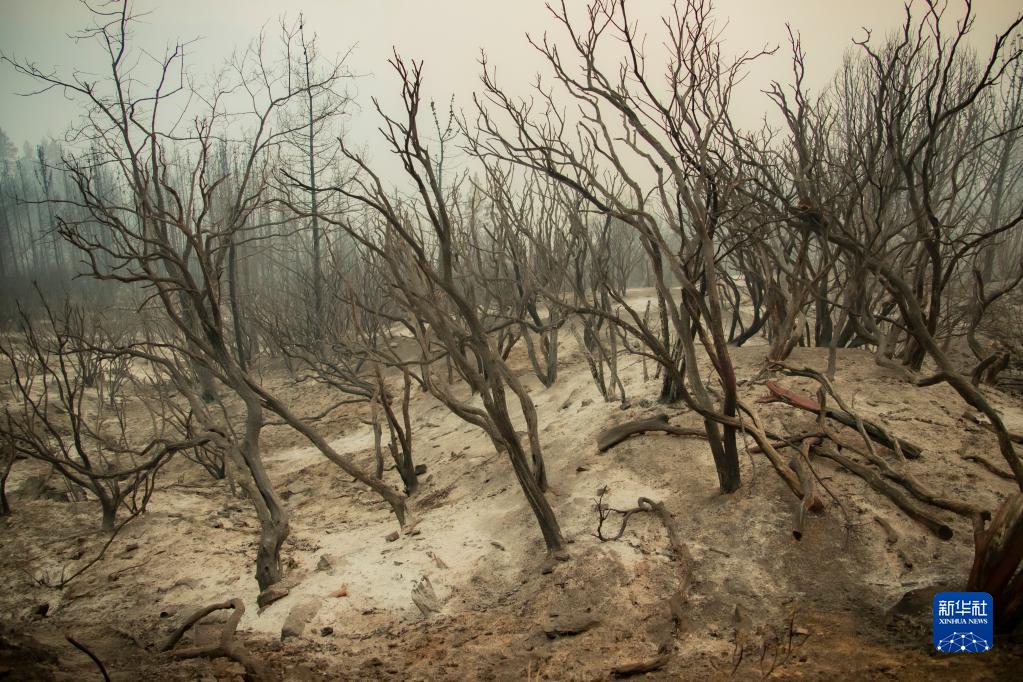 這是9月9日在美國加利福尼亞州北部塔霍湖附近的森林拍攝的火災過(guò)后的景象。