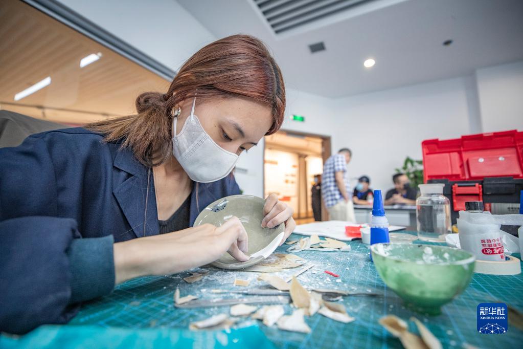 9月9日,參賽人員在進(jìn)行陶瓷文物修復技能比賽。