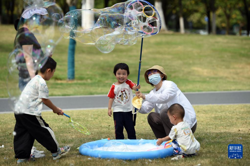 9月10日,市民帶著(zhù)小朋友在安徽省合肥市綠軸公園玩耍。