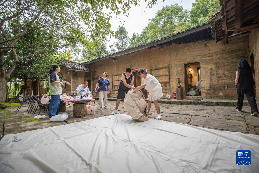 9月10日,游客在重慶市巴南區二圣鎮集體村的一家民宿內搭帳篷。新華社記者 黃偉 攝