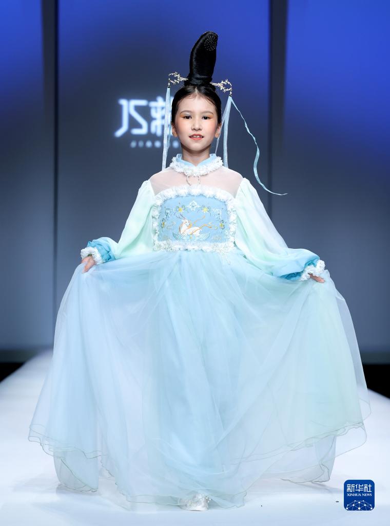 9月11日,模特在在北京中國國際時(shí)裝周(2023春夏系列)舉行的“JS·蔣碩”童裝發(fā)布會(huì )上展示設計師蔣碩設計的童裝。