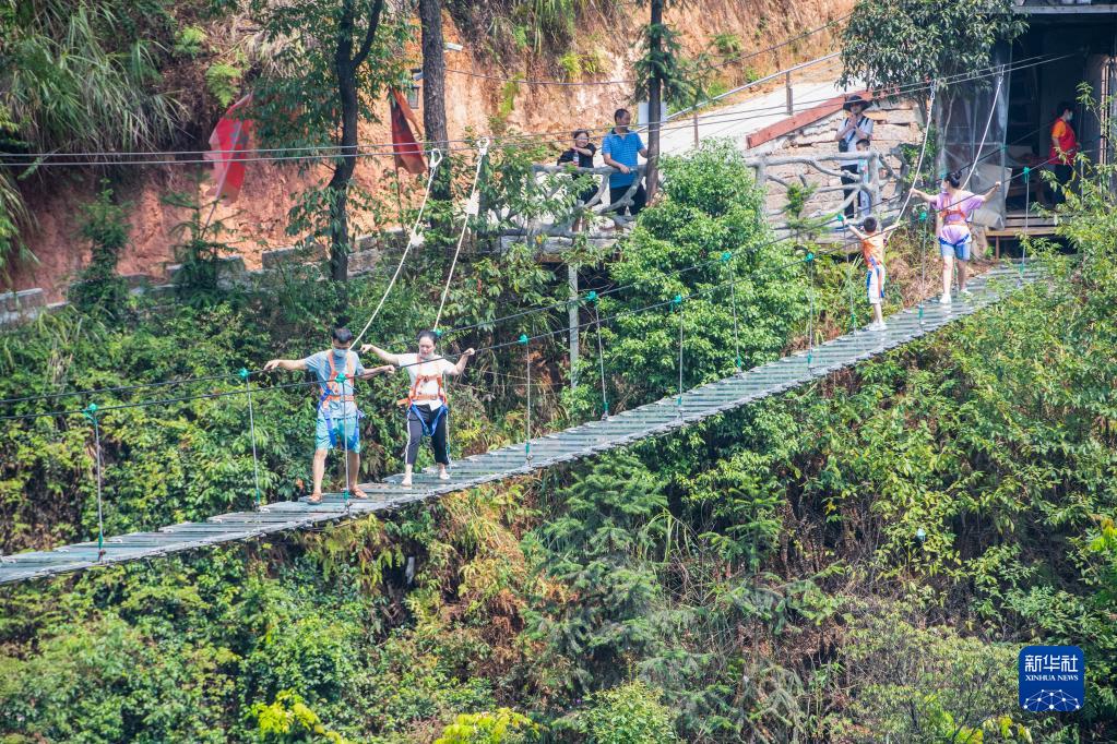 9月11日,游客在重慶市巴南區迎龍峽景區體驗玻璃橋項目。新華社記者 唐奕 攝