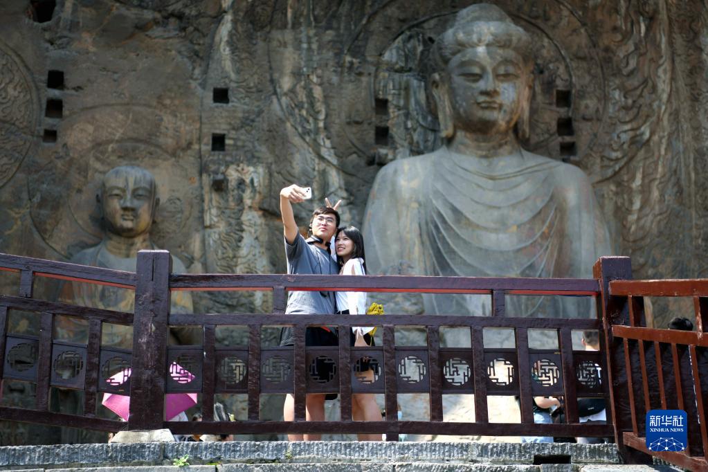 9月11日,游客在河南省洛陽(yáng)市龍門(mén)石窟景區參觀(guān)游覽。新華社發(fā)(張怡熙 攝)