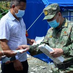9月10日,陸軍第77集團軍某工兵旅官兵在大渡河流域王崗坪鄉河段卸載沖鋒舟(無(wú)人機照片)。