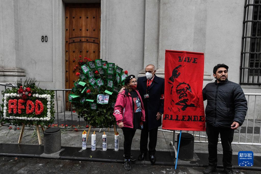 9月11日,智利民眾在位于首都圣地亞哥的總統府莫內達宮附近紀念前總統阿連德遇難49周年。