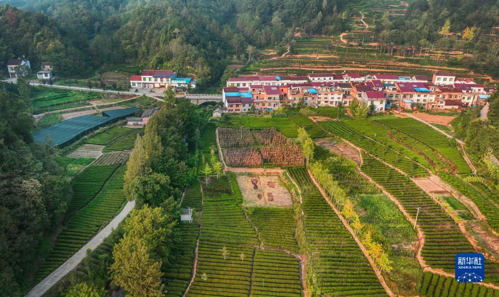 9月12日拍攝的西鄉縣峽口鎮文溪村茶園(無(wú)人機照片)。