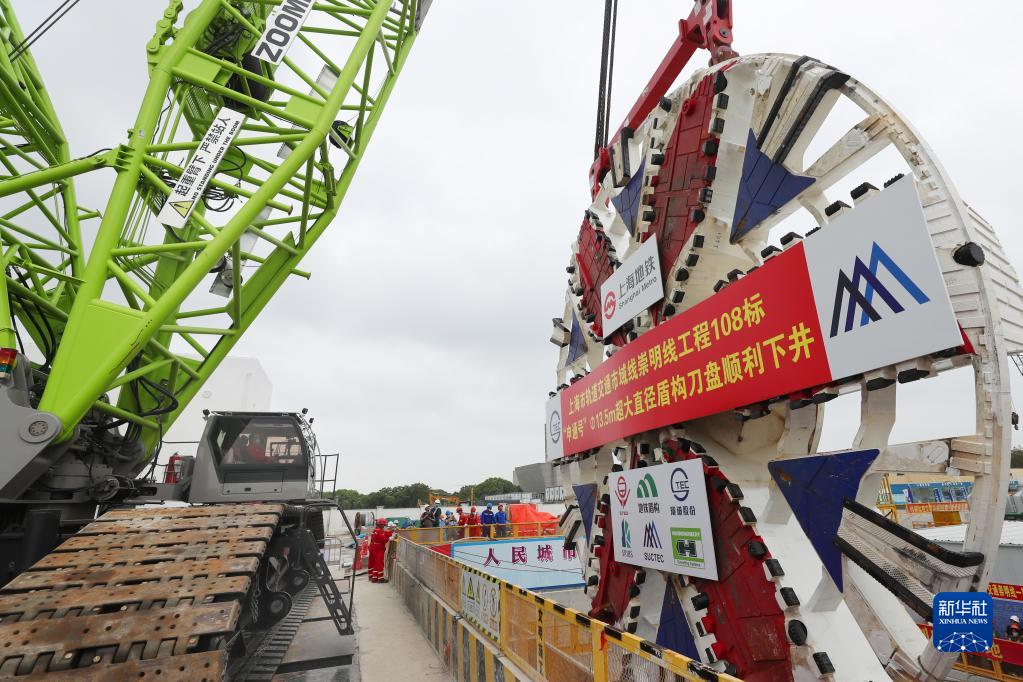 上海:軌道交通崇明線(xiàn)“申通號”盾構機刀盤(pán)順利下井