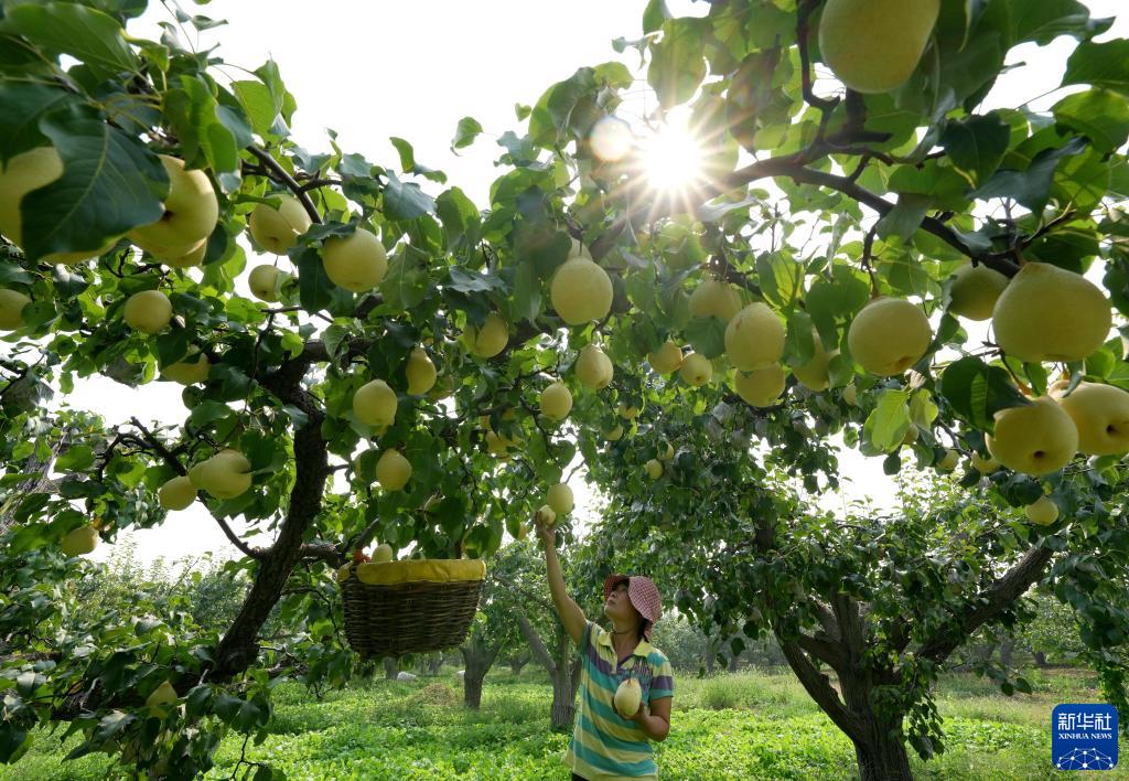 9月12日,河北省晉州市周家莊鄉果農在果園采摘鴨梨。