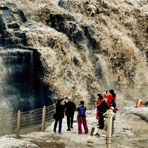 近日,秦晉交界的黃河壺口瀑布水量大增,形成綿延數百米的壯美瀑布群。