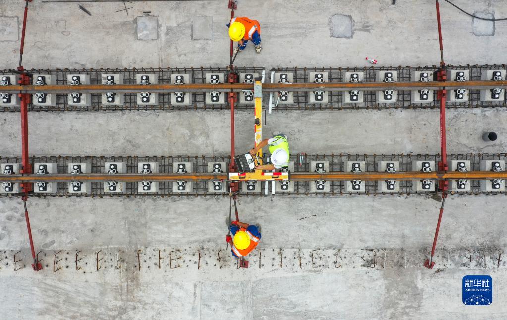 9月15日,施工人員在重慶軌道交通18號線(xiàn)軌道工程一標段作業(yè)(無(wú)人機照片)。
