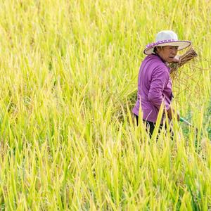 秋收時(shí)節,金黃色的水稻鋪滿(mǎn)山坡,稻農們利用晴好天氣搶收稻谷,呈現出一派美麗的豐收畫(huà)卷。如今,“花田貢米”已經(jīng)成為當地人的主要增收來(lái)源。