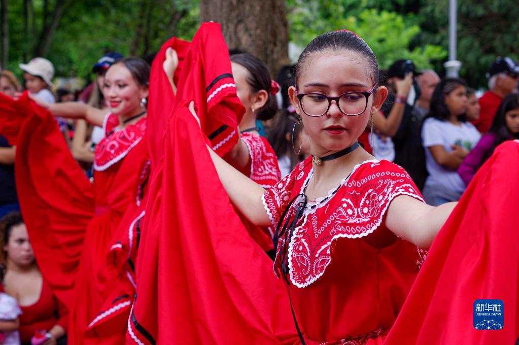 9月15日,在哥斯達黎加埃雷迪亞,民眾走上街頭歡慶該國獨立201周年。