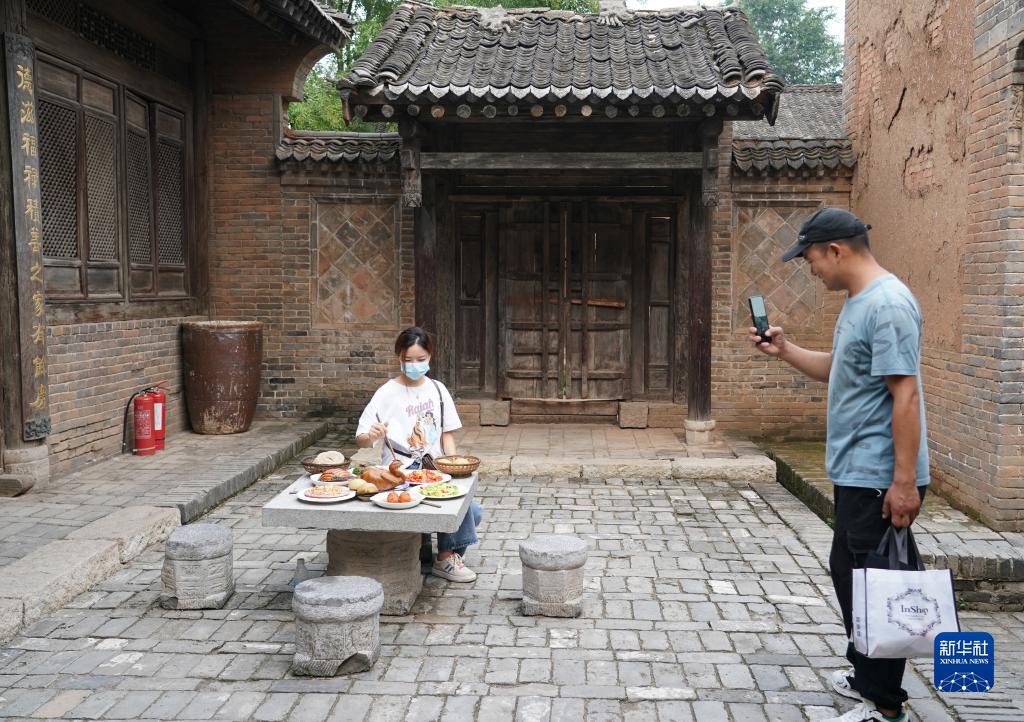 9月14日,游客在白鹿原影視城內拍照游覽。