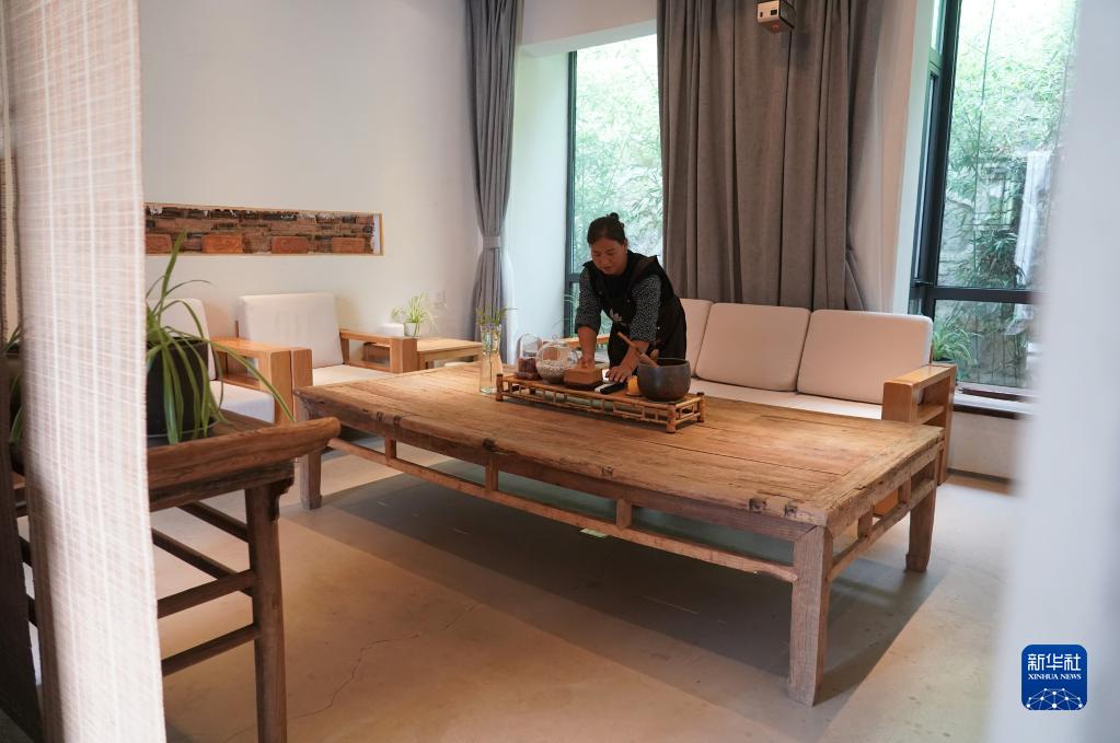 9月14日,西安市藍田縣小寨鎮董嶺村村民劉春玲在打掃民宿。
