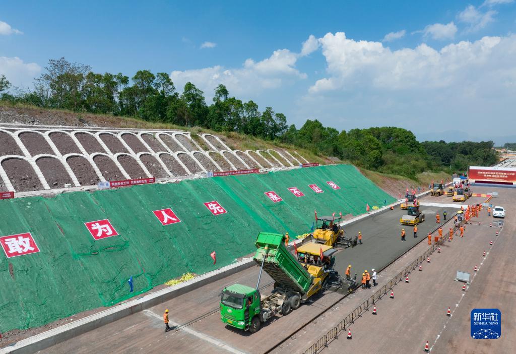 9月16日,來(lái)自中國能建葛洲壩路橋公司的建設者在武陽(yáng)高速黃石段施工(無(wú)人機照片)。