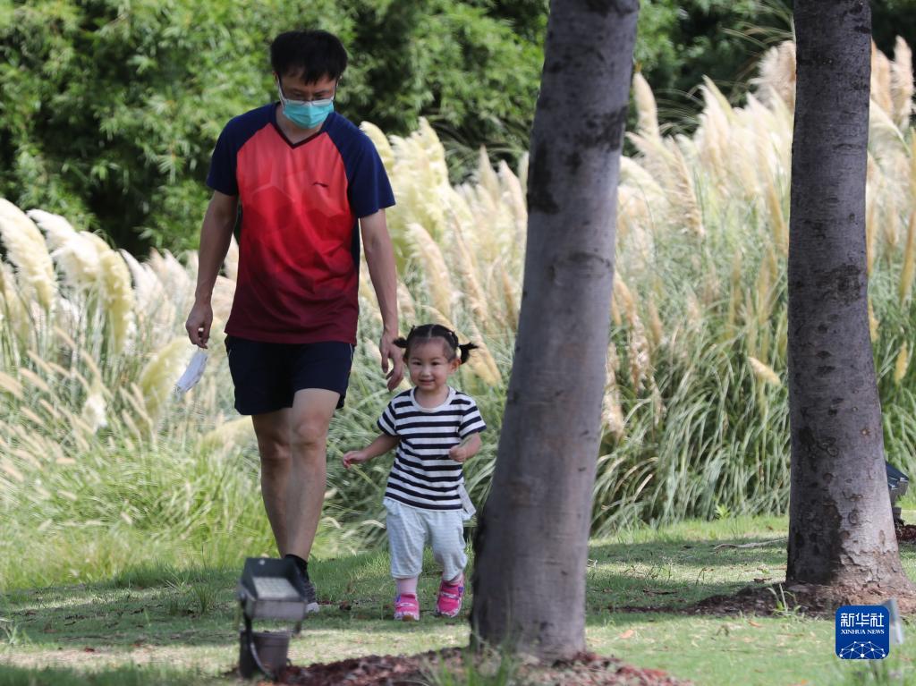 2022年8月28日,小朋友在家長(cháng)的陪伴下,在楊浦濱江雨水花園玩耍。