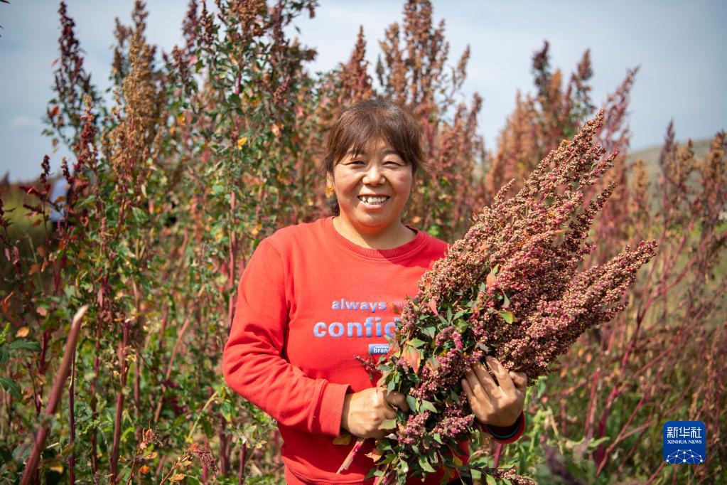 在靜樂(lè )縣娘子神鄉南舍村,村民展示剛收割的藜麥(9月16日攝)。