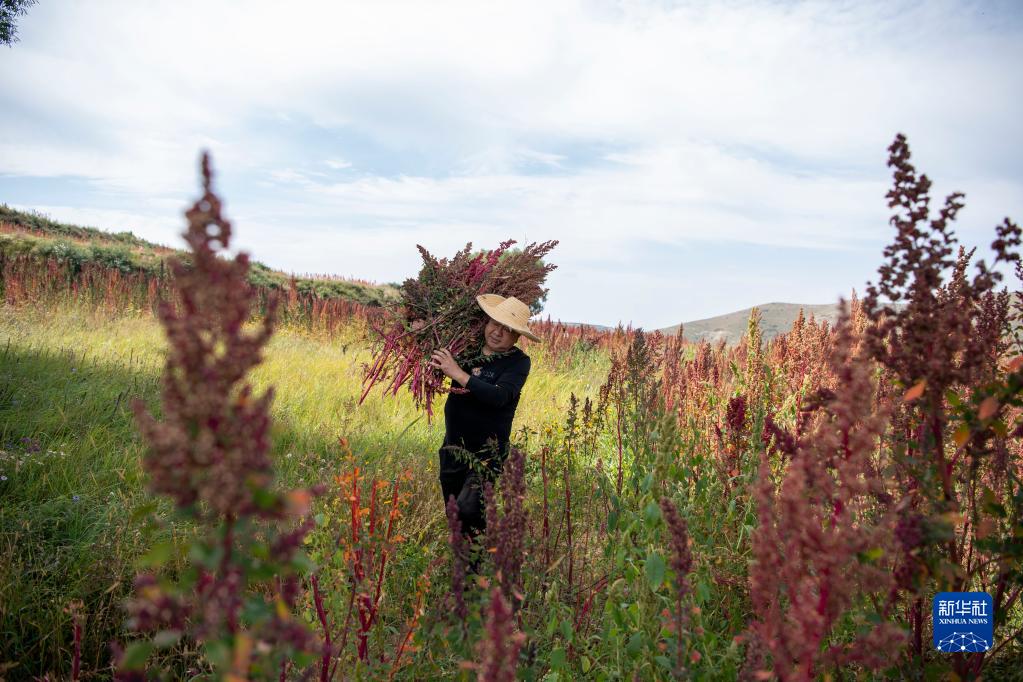 時(shí)下,位于山西省忻州市靜樂(lè )縣的5萬(wàn)多畝藜麥陸續進(jìn)入成熟期,農民利用晴好天氣進(jìn)行收割,田間地頭一派忙碌景象。