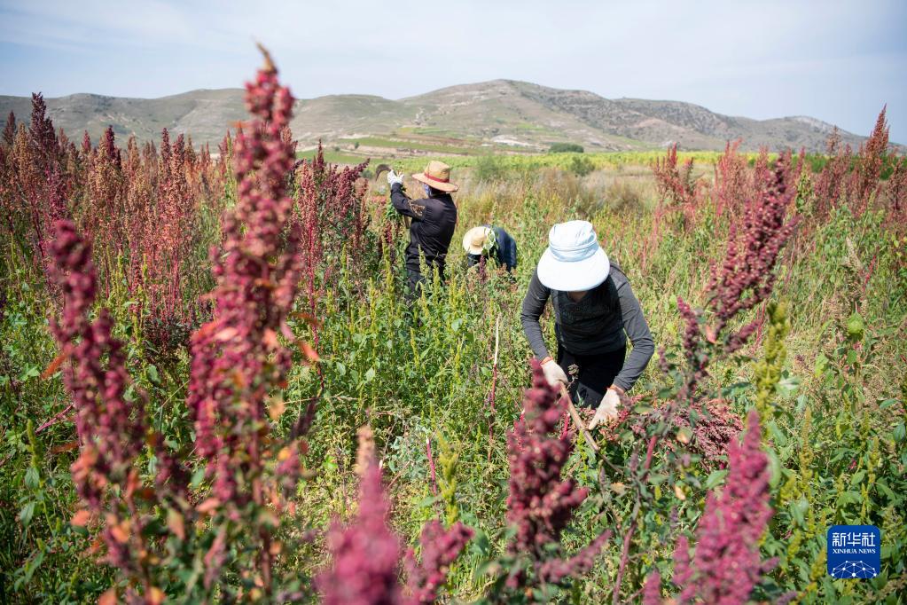 在靜樂(lè )縣娘子神鄉南舍村,村民在田間收割藜麥(9月16日攝)。